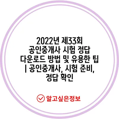 2022년 제33회 공인중개사 시험 정답 다운로드 방법 및 유용한 팁 | 공인중개사, 시험 준비, 정답 확인
