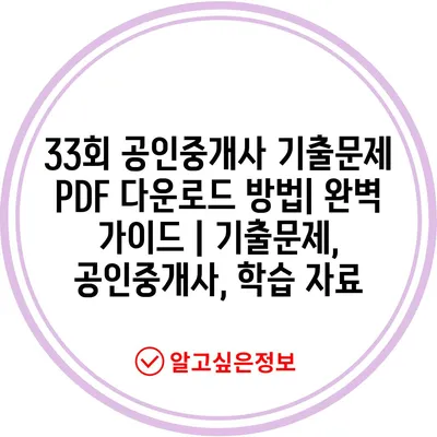 33회 공인중개사 기출문제 PDF 다운로드 방법| 완벽 가이드 | 기출문제, 공인중개사, 학습 자료