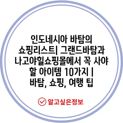인도네시아 바탐의 쇼핑리스트| 그랜드바탐과 나고야힐쇼핑몰에서 꼭 사야 할 아이템 10가지 | 바탐, 쇼핑, 여행 팁