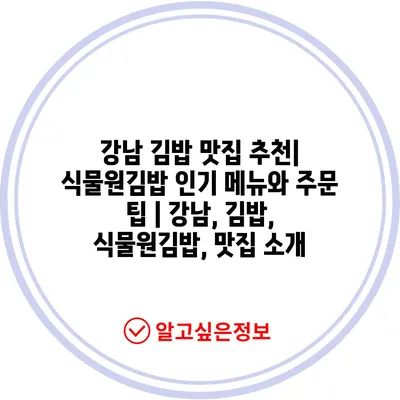 강남 김밥 맛집 추천| 식물원김밥 인기 메뉴와 주문 팁 | 강남, 김밥, 식물원김밥, 맛집 소개