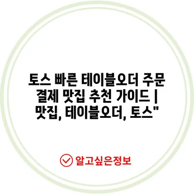 토스 빠른 테이블오더 주문 결제 맛집 추천 가이드 | 맛집, 테이블오더, 토스”